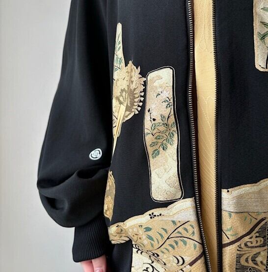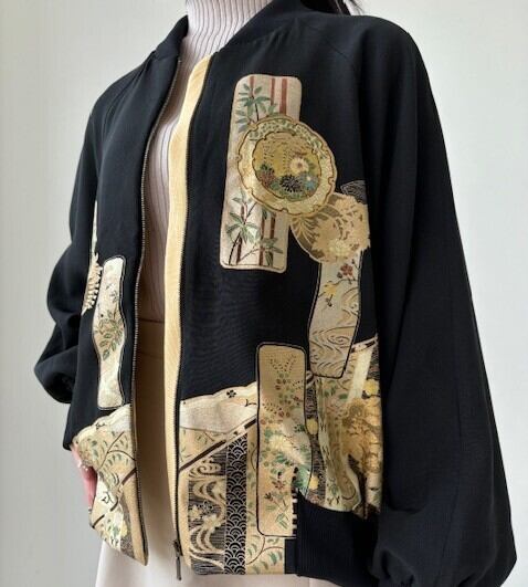 【熨斗華‐のしはな】KIMONOリメイク 正絹 金箔 ラグラン袖+ドルマン風 ブルゾン