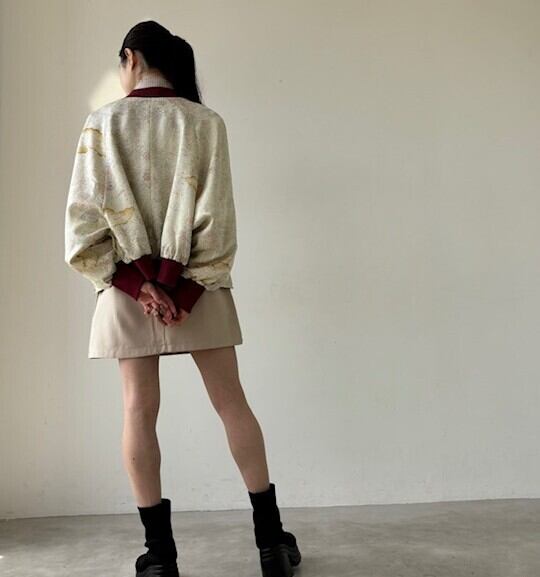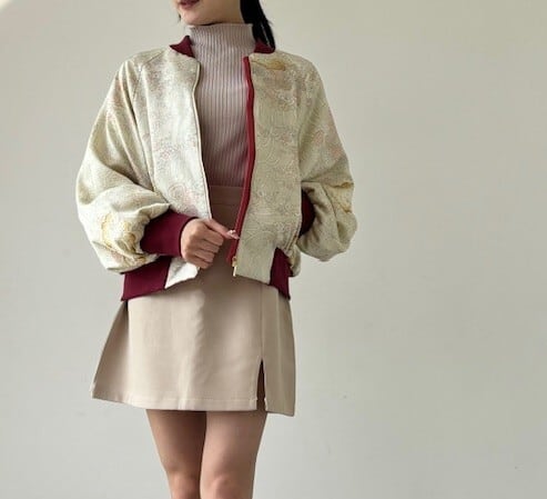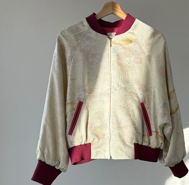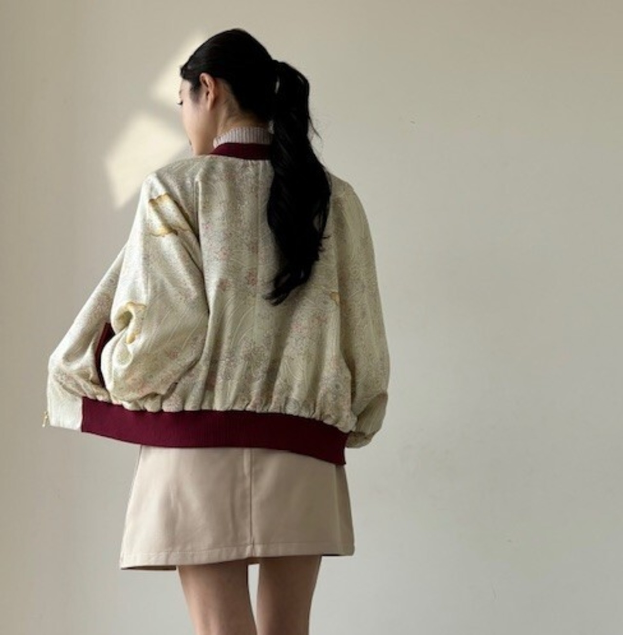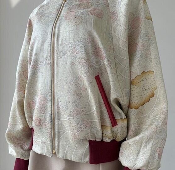 ポケットやファスナー裏には、淡いピンクのKIMONO布と