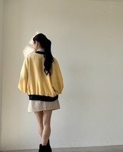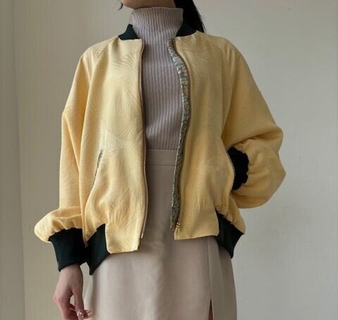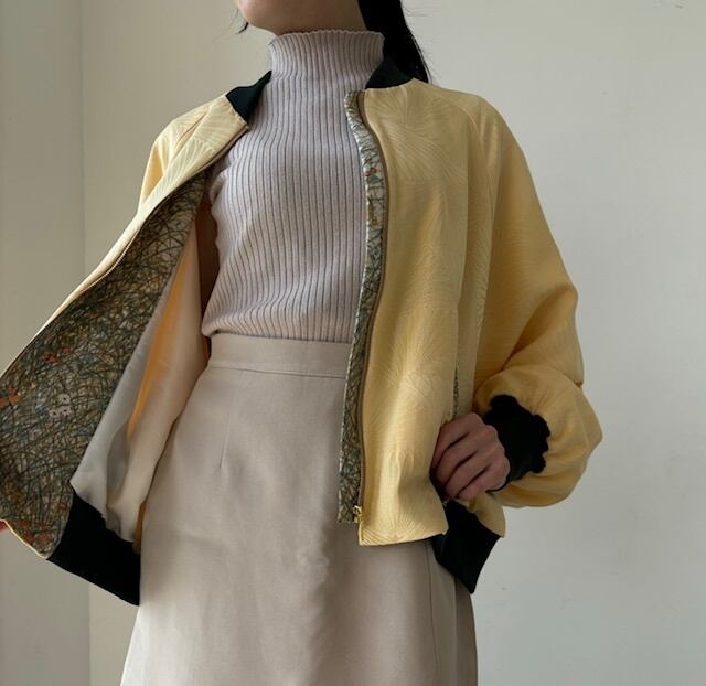襟と袖には深いみどりのリブを合わせ