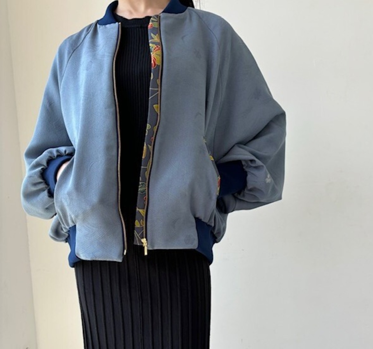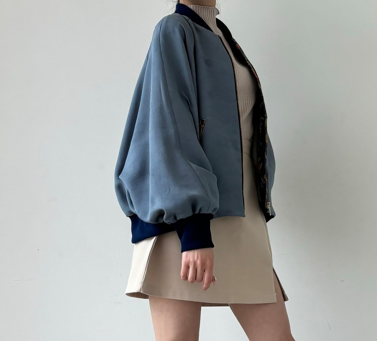 ゆったりとしたドルマンスリーブにドレープが引き立ちます。