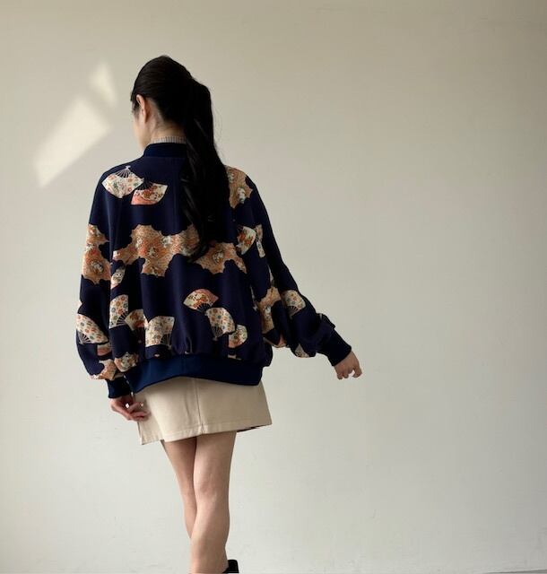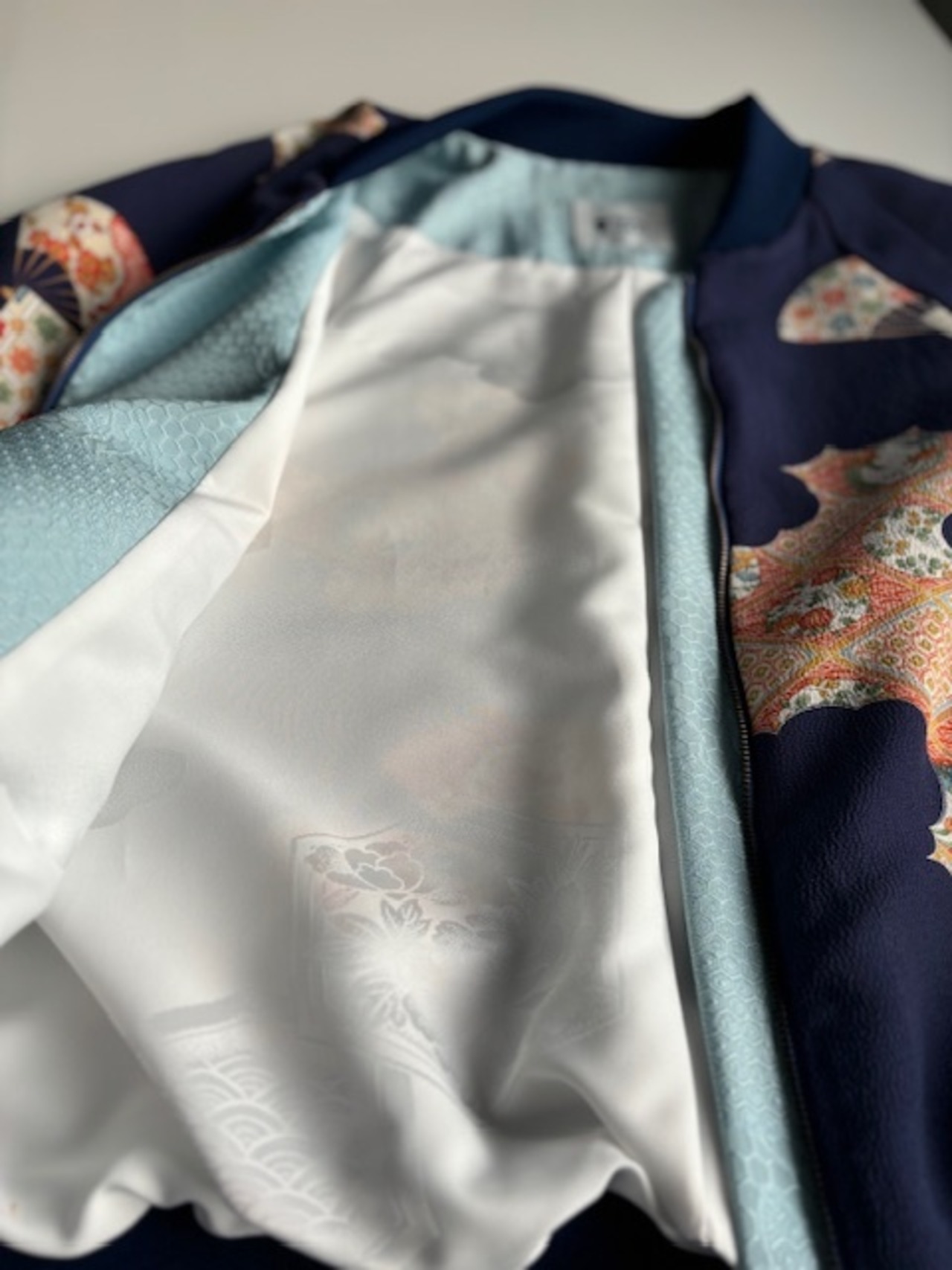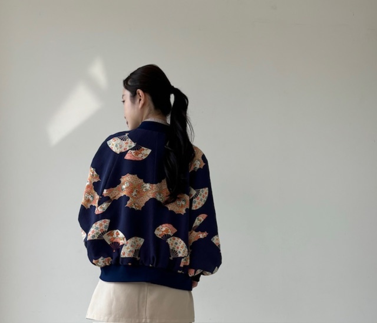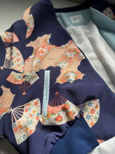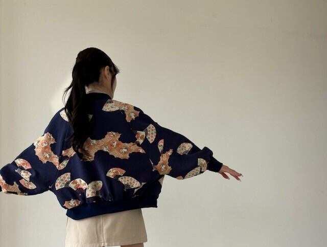 【扇舞‐せんぶ‐】KIMONOリメイク 裏地付き ラグラン袖×ドルマン風/ブルゾン