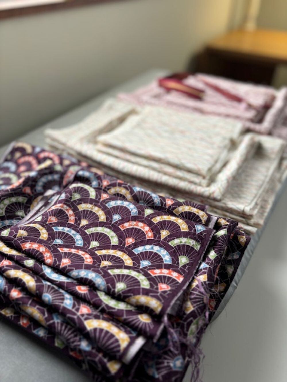 ・古布を使用しているため、小さなシミ・折りジワ・色ムラ焼け・針穴の跡などが見られる場合がございます。
