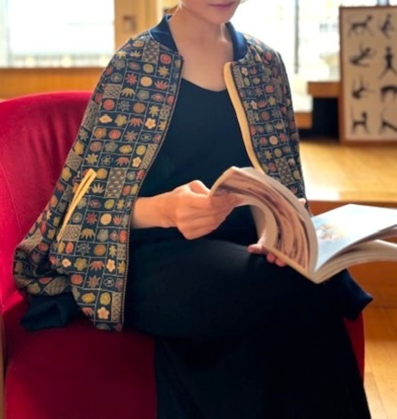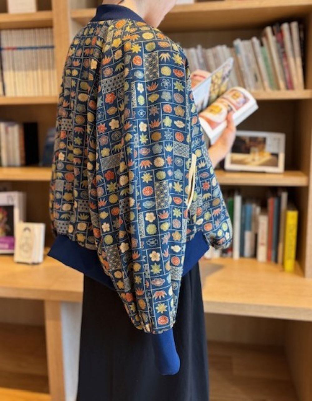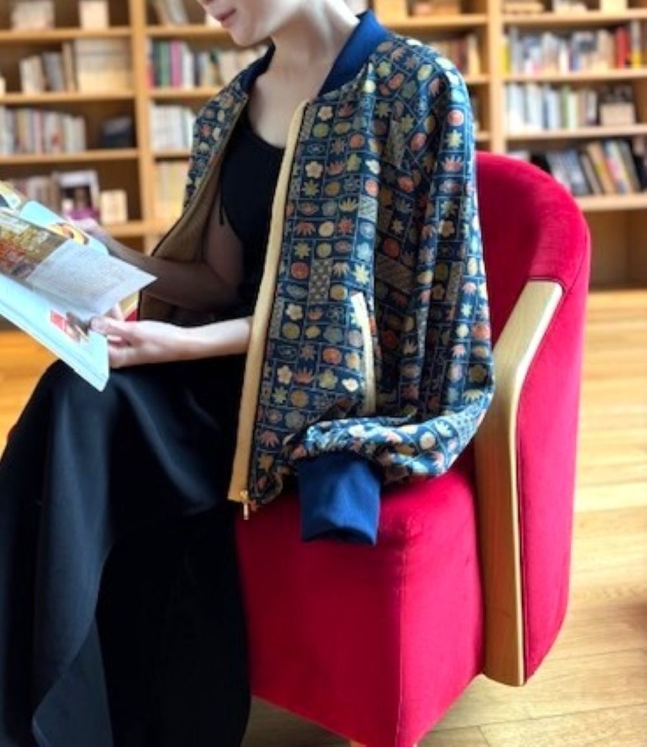 万華鏡のように色とりどりの文様が、目を楽しませてくれるブルゾン。